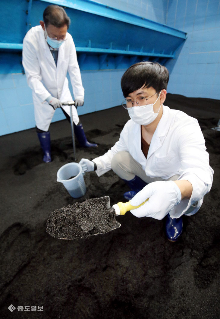 수돗물에서 유충이 발견되는 신고가 잇따라 발생하며 전국 정수장에 대한 긴급 전수조사가 진행 중인 가운데 21일 대전 대덕구 상수도사업본부 송촌정수사업소에서 직원들이 활성탄 검체 채취를 하고 있다. 이성희 기자 token77@