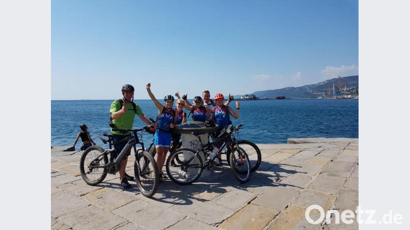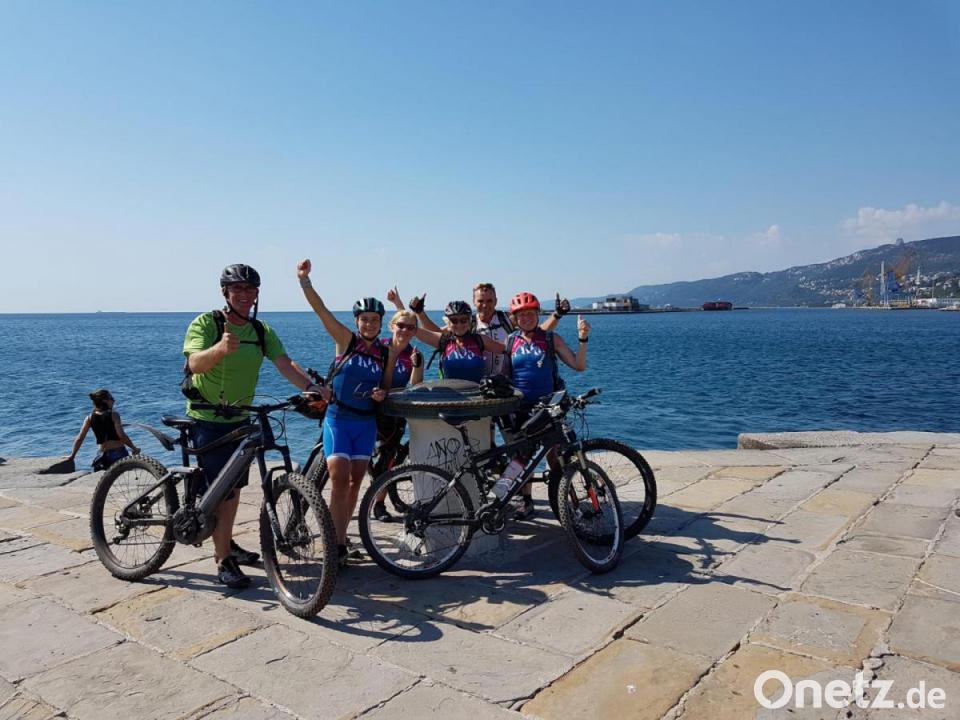 Jeder in der Gruppe war am Ende froh, dass der Alpencross ohne Unfälle abgegangen war. Und es gab auch nur zwei Pannen. Der erste Blick aufs Mittelmeer oberhalb von Tolmin entschädigte für die Strapazen. 540 Kilometer und über 12.000 Höhenmeter waren geschafft.