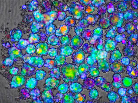 이번 연구에 사용된 여러 간 오가노이드를 컬러 염색 공초점 현미경 이미지로 나타낸 모습. 녹색은 Bile acid, 빨간색은 Pi, 파란색은 오가노이드의 ROS. © Institute of Research,TMDU