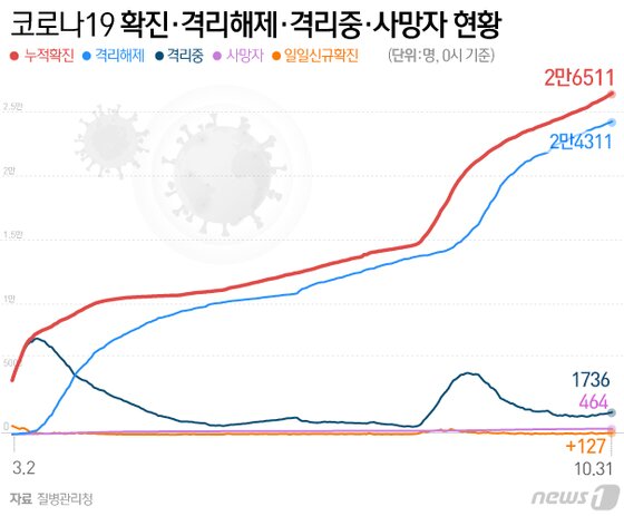 사망자는 전일보다 1명 늘어난 464명을 기록했다. 위중증 환자는 3명 증가해 총 54명으로 늘었다.