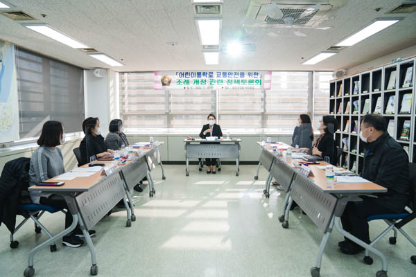 다만 관내 81곳의 어린이 보호구역 중 어린이 보호구역 표시의 부족, 속도제한 표지판 미설치 등 여전히 관리의 사각지대가 존재하며 어린이가 일상적으로 이동하는 통로인 어린이 통학로의 안전을 구체화 할 필요성이 제기돼 지난 4일 박성연 의원 주재로 간담회가 개최됐다.