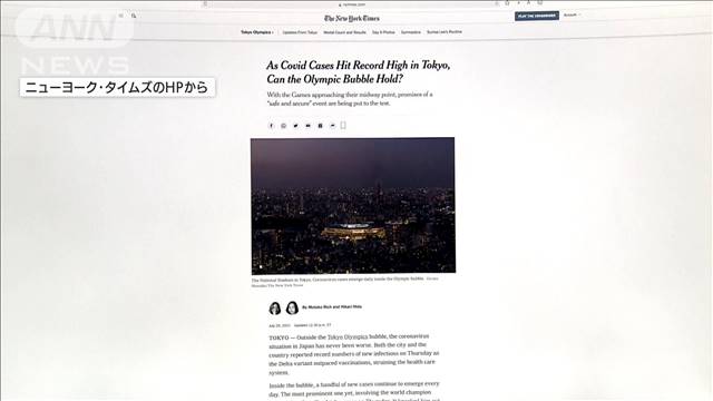 29日付のニューヨーク・タイムズは「感染者が過去最多の東京でオリンピックのバブルは維持できるのか」という見出しで「安心で安全な大会という約束が試されている」と報じました。