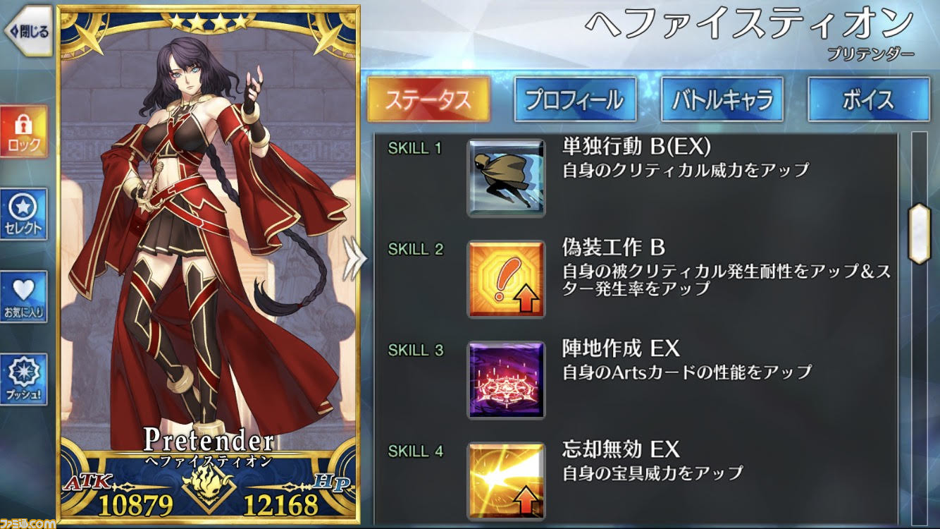 なお、本アップデートにより、“復刻版:レディ・ライネスの事件簿 -Plus Episode-”の進行により名称が明かされるヘファイスティオンのクラススキル4“???”が、イベントを未進行でも“忘却無効 EX”と表示されるようになった。