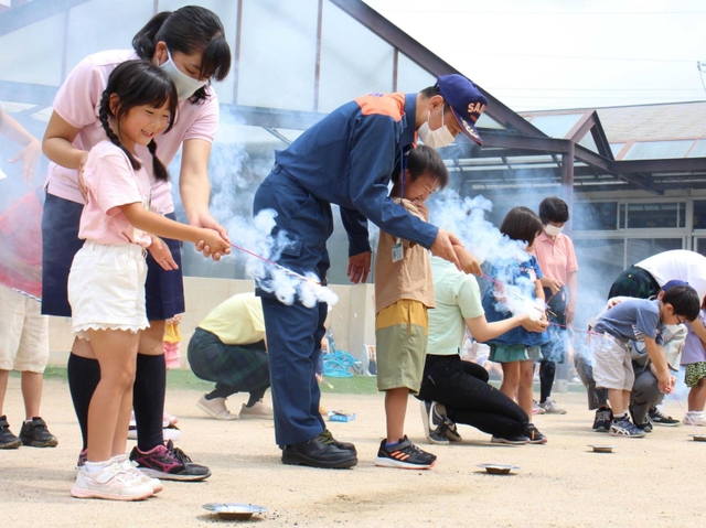 花火、安全な遊び方は? 三田の幼稚園で教室 市消防職員が持ち方、消し方指導 - 神戸新聞NEXT