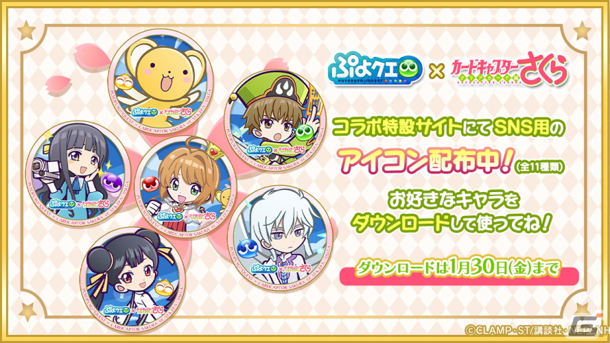 「ぷよぷよ!!クエスト」×「カードキャプターさくら クリアカード編」コラボ記念特設サイトにてSNS用にアイコン配布中