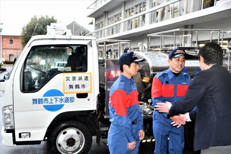 舞鶴市は15日、能登半島地震で被災した石川県能登町に給水車(タンク容量1・7トン)を派遣した。期間は19日までの予定で、府内の自治体と交代しながら給水を続ける。