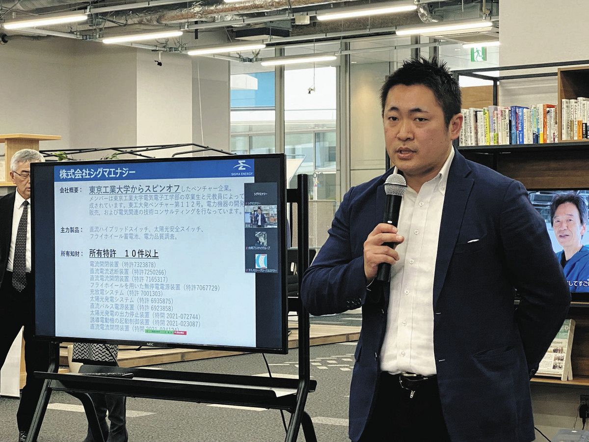 能登半島地震で倒壊家屋の太陽光パネルが発電を続けると火災につながる危険性が指摘されたことを受け、エネルギー関連器機を製造する「シグマエナジー」(大田区)は、安全装置の必要性を報告。同社代表で東工大工学博士の川口卓志さんは「非常時に家庭での太陽光発電が止まる技術があれば、災害の拡大を防げる。コスト減にも役立ち、安心安全な太陽光パネルが設置できる」とした。