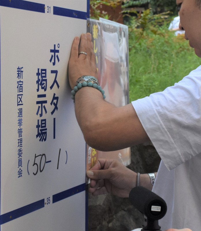 49番目以降に立候補を届け出た男性候補者は取材に「普通にポスターを張るのと比べると、1カ所あたり倍くらい時間がかかるんじゃないか」と不満そうな表情。別の男性候補者は「風に揺れて(通行人が)気になるのでちょうどいい。でも、掲示板は増やしておいてほしかった」とこぼした。【田中綾乃、深津誠】